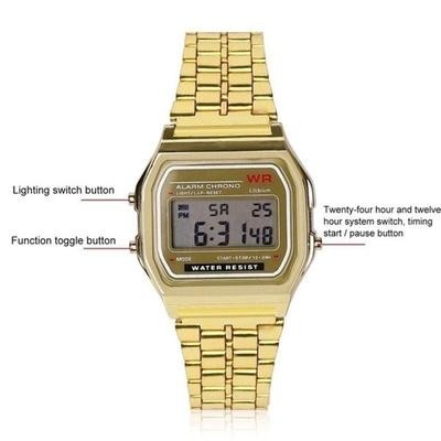 النمط: عشوائي :لا : إلكترونية : 37mm : 10mm : التاج الحلزوني : مرآة زجاجية منتظمة: مشبك حدوة الحصان : الفولاذ المقاوم للصدأ : البلاستيك :مربع : سبيكة الحديد : الأسود ، الفضة ، الذهب ، الذهب الوردي : 1 'ساعة