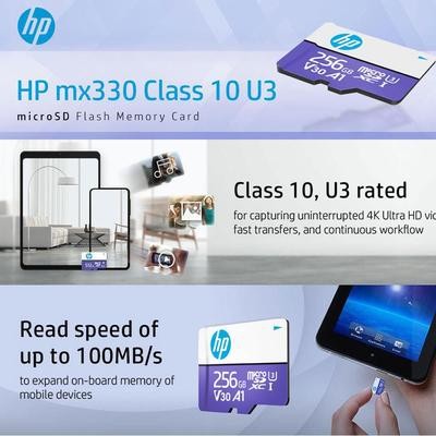 HP MX330 Class 10 U3 V30 MicroSDXC CARMER MEMIMERT - 100 MB/S Class 10 ، U3 ، V30 ، A1 ، 4K UHD ، Full