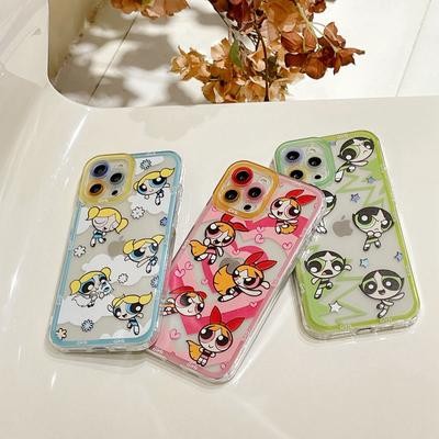 титульная страница > المنتجات الإلكترونية > Cartoon PowerPuff Girls Clear Phone Case for iPhone SE 2022 13 12 11 Pro Max XR XS