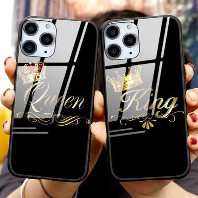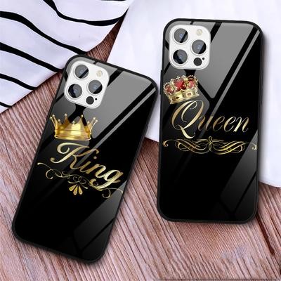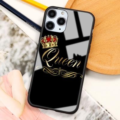 زوجين من كوين كينج كراون الماس المجدٍ للهاتف الزجاجي لـ iPhone 13 12 11 SE 20