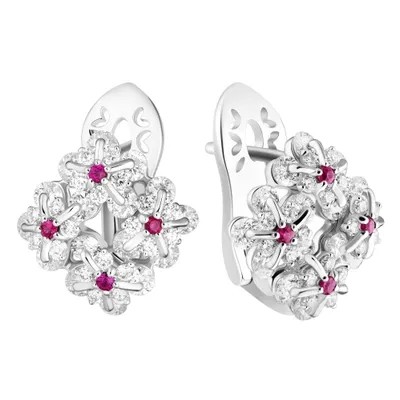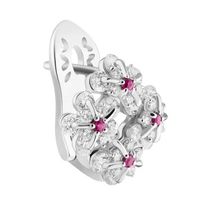 أقراط مع قفل باللغة الإنجليزية في أسماك الذهب الأبيض 750 ، مطلي روديوم. 72natural Diamond-57ith Weight 1،905ct 3/5 ، 8Round Natural Rubies0،110Ct 3/3. Production Weight6،92gr.
