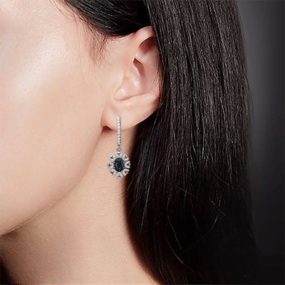 титульная страница > مجوهرات > أقراط بلاتينا مع قفل إنجليزي مصنوع من 585 من الذهب الأبيض مع الياقوت والماس